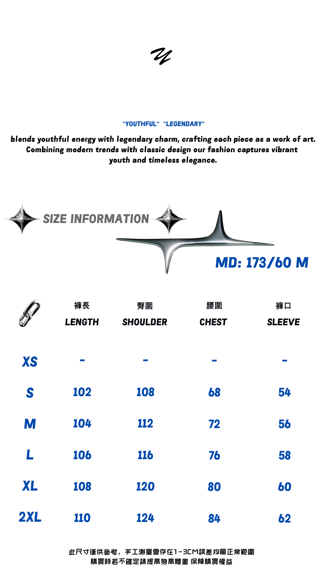 【如果您在尺寸上挑選有困難,歡迎私訊我們小編並提供 (身高體重、身高比例) 以我們的經驗幫你挑選適合的尺寸給您參考】