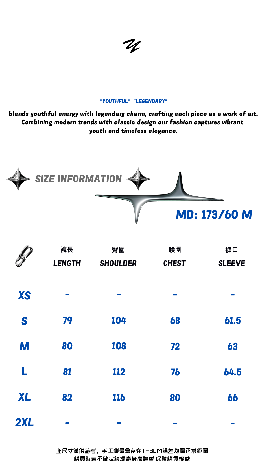 【如果您在尺寸上挑選有困難,歡迎私訊我們小編並提供 (身高體重、身高比例) 以我們的經驗幫你挑選適合的尺寸給您參考】