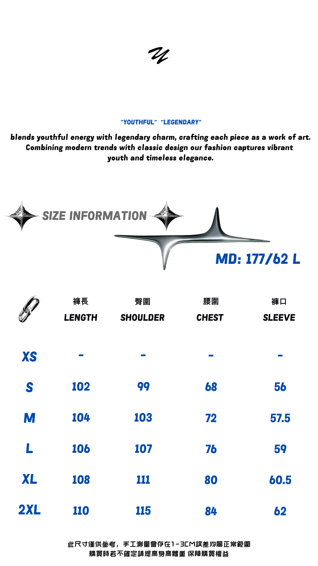 【如果您在尺寸上挑選有困難,歡迎私訊我們小編並提供 (身高體重、身高比例) 以我們的經驗幫你挑選適合的尺寸給您參考】
