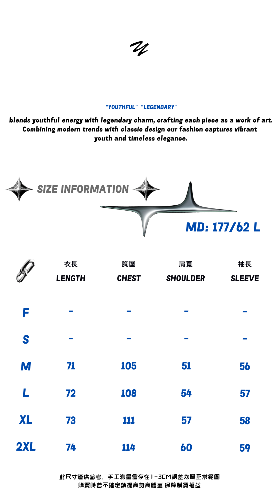 【如果您在尺寸上挑選有困難,歡迎私訊我們小編並提供 (身高體重、身高比例) 以我們的經驗幫你挑選適合的尺寸給您參考】
